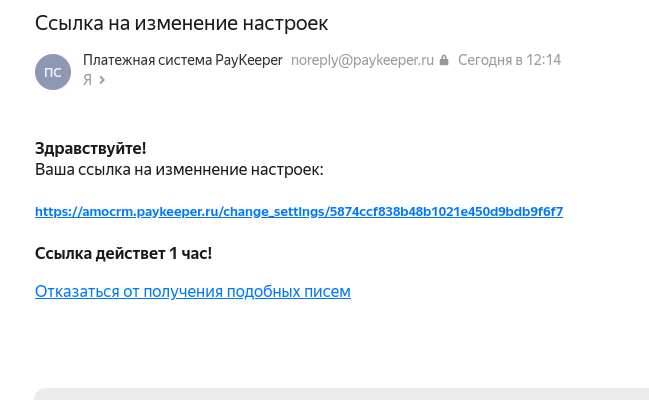 - Ожидайте письмо со специальной ссылкой на почту, которая была указана в вашем профиле в настройках аккаунта amoCRM.