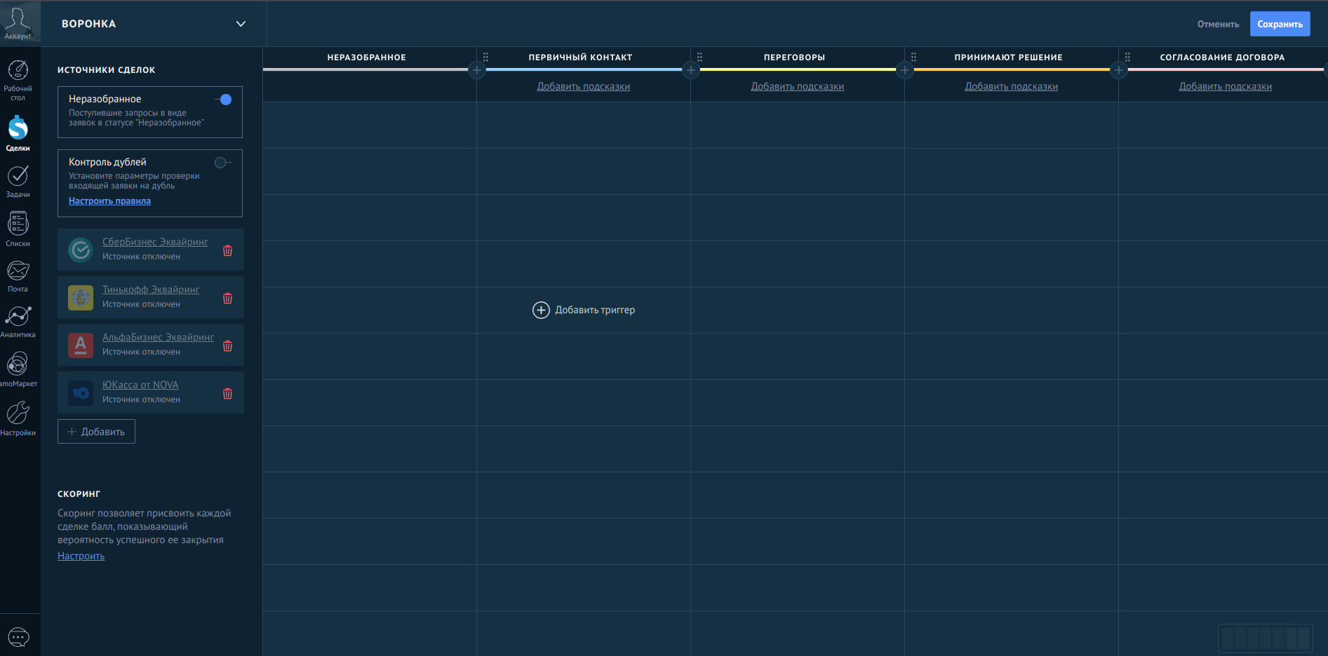 Перейдите в раздел «Сделки», нажмите кнопку «Настроить воронку».