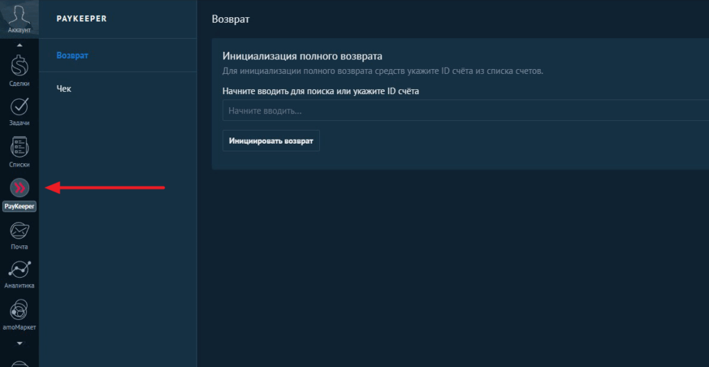 - Перейдите в раздел меню с названием приложения «PayKeeper».