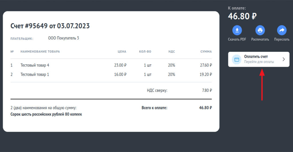 Внимание! Иногда статус счета обновляется не сразу а в течение нескольких минут.