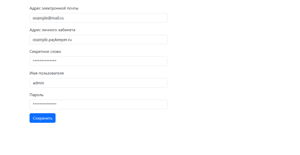- В поле «Личный кабинет PayKeeper» введите адрес личного кабинета Paykeeper без указания протокола. Например, если адрес вашего личного кабинета PayKeeper — https://example.server.paykeeper.ru, то введите example.server.paykeeper.ru.
