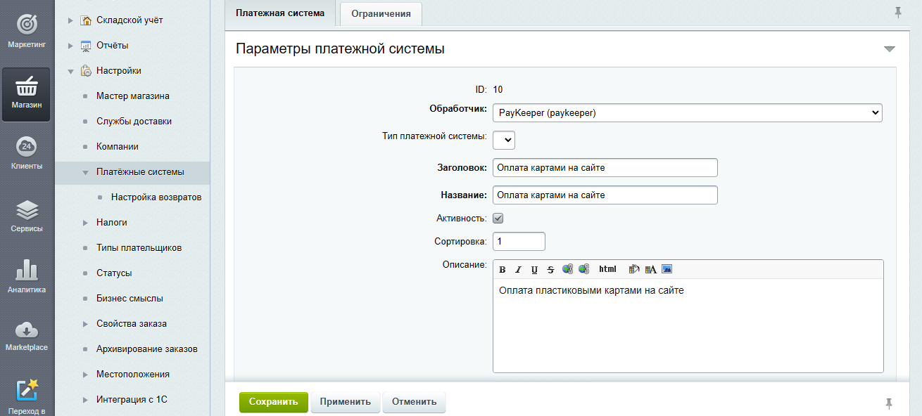 - Создание и настройка способа оплаты PayKeeper.