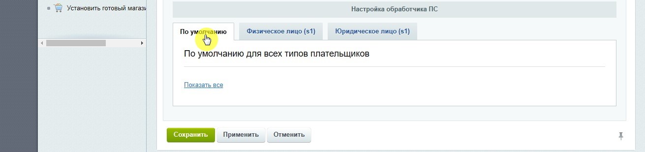 2.3. На этой же странице прокрутите вниз до графы «Настройка обработчика ПС» и выберите вкладку «По умолчанию» (рисунок 2.3). Обязательно нажмите на ссылку «Показать все», чтобы открылись все остальные разделы настроек: