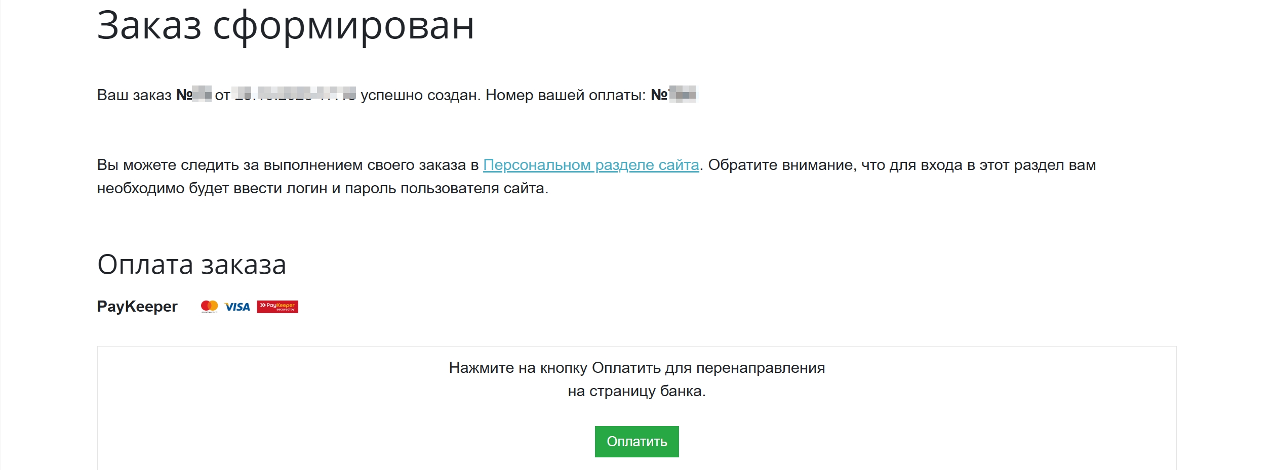 5.2. После нажатия на кнопку оформления заказа, появляется кнопка оплаты от PayKeeper, которая ведёт Покупателя на платёжный шлюз.