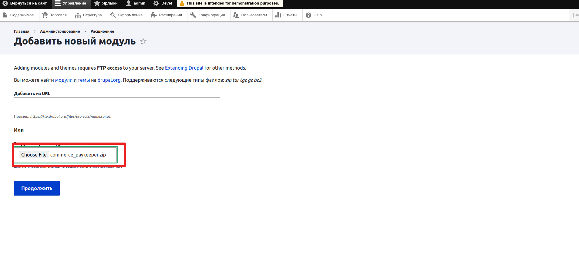 Установка модуля PayKeeper в CMS Drupal 8, 9 и 10