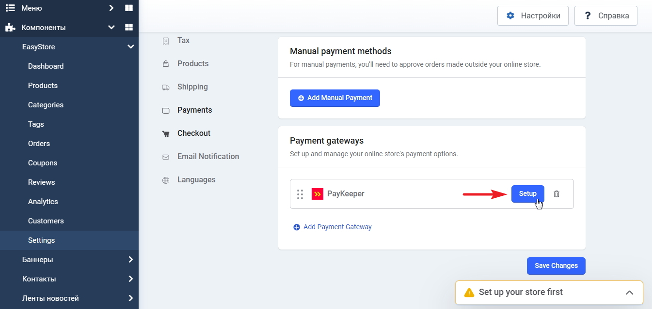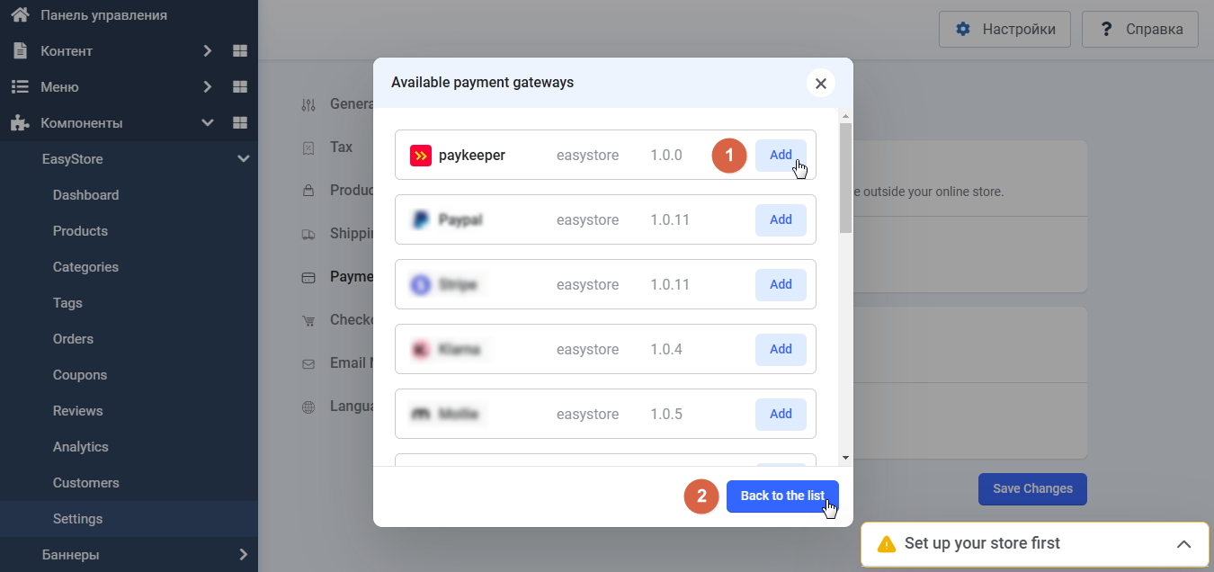 Инструкция по установке и настройке плагина PayKeeper для компонента EasyStore на базе CMS Joomla.
