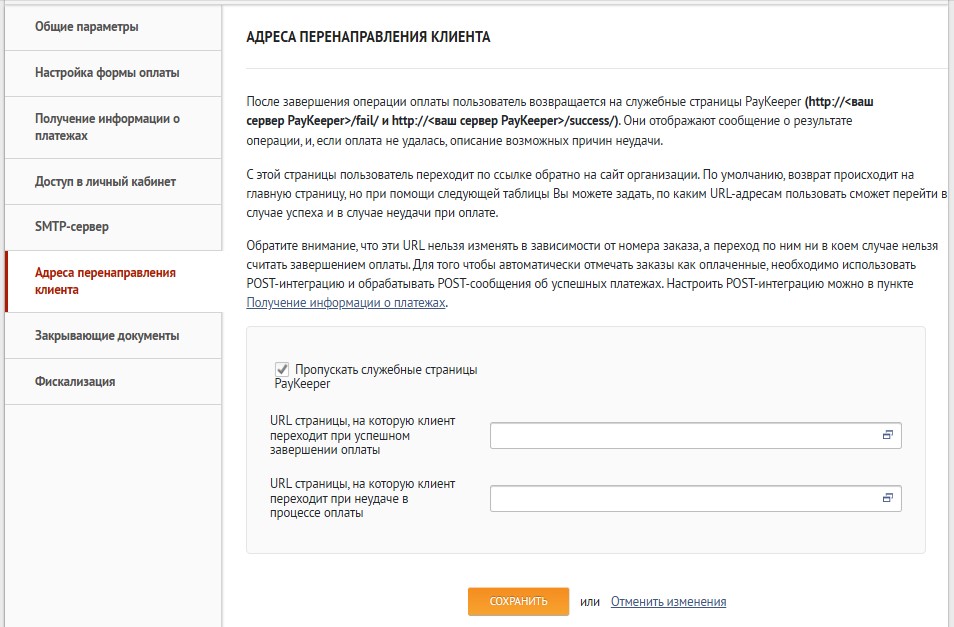 - Пропускать служебные страницы PayKeeper